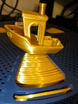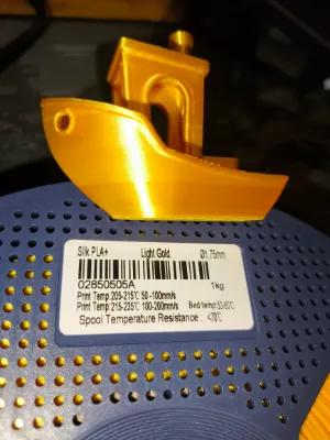 Filament złoty, a jednocześnie skromny 🙂 Pięknie się prezentuje i bardzo łatwo się drukuje. Cieszę się, że udało mi się kupić go na Amazonie w świetnej cenie 45,99. Na 99% wykorzystam go do wydruków na choinkę — być może nawet do zrobienia gwiazdy na czubek. Świetny materiał do dekoracji! Protip: Ten filament potrafi wyglądać zupełnie inaczej w zależności od prędkości druku. • Przy niższych prędkościach powierzchnia jest gładsza pod palcem i kolor wydaje się bardziej złoty, równy i głęboki (widoczny pasek na statku) • Po zwiększeniu prędkości efekt robi się bardziej matowy, wręcz mniej połyskujący niż klasyczny silk. Detale zaczynają się przesuwać, krawędzie są mniej ostre i cały wydruk traci swoją precyzję. Ten filament zdecydowanie lepiej prezentuje się przy wolniejszych, bardziej dokładnych ustawieniach.