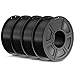 JAYO Filament PLA 1,75 mm, 4,4 kg, PLA do drukarki 3D, 1,1 kg na szpulę, 4 cewki, wielokolorowy, do większości drukarek FDM 3D (czarny)