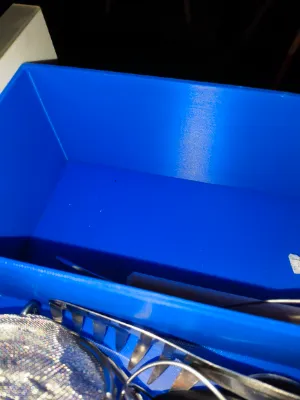Ten filament jest lekko przezroczysty przy bardzo cienkich elementach, ale przy grubszych modelach wygląda znacznie lepiej. Przy wkładzie do szuflady o grubości 2 mm (3 obrysy i 20% wypełnienia) ściana wyszła pełna, a kolor jest dobrze widoczny i wyraźny. Materiał zachowuje się przewidywalnie i nadaje się zarówno do drobnych, jak i bardziej funkcjonalnych wydruków. Wielka zaleta to cena, nie było szkoda 1,5kg na wkład od szuflady:) lekko nitkował na zakrętach.